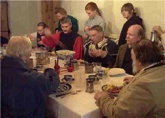 "A bell summoned me to the first table with Mr. Denig [factor at Fort Union] and the clerks. My eyes almost ran over with tears! There was chocolate, milk, butter, omelet, fresh meat, hot bread-what a magnificent spread!"