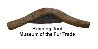 “When Madame David came to get "le dur" from me so that she might improve some robes Mr. Denig [the factor] thought too imperfectly prepared for market, I could not understand for a long while what "le dur" could mean. I was conducted by her to the meat house, where she pointed out the liver. This organ, also the brain of deer, or in the case of emergency, fat of any sort, tallow, etc., are all used to soften hides. One woman dresses a buffalo hide in 3 or 4 days just as well, makes the skin just as soft and durable, as our leather dressers do in 6 months. First of all, they stretch the raw hide on the ground and fasten it down with pegs or wooden pins, and with some sharp instrument, or a piece of bone perhaps, they scrape off every particle of flesh, which is eagerly devoured by the hungry dogs. If the skin is not to be dressed until later they leave it spread in the air to dry until it becomes quite hard. If, on the other hand, they intend to prepare the robe at once, they rub the hide for one entire day with liver, fat, or the brain of a deer to soften the skin, leave it 2 or 3 days (according to the season or extreme temperature) until the grease soaks in, then they dry it at a slow fire, constantly beating or rubbing it meanwhile with a stone until it becomes uniformly soft and pliable. This rubbing is of the greatest importance in the dressing of skins after Indian fashion.